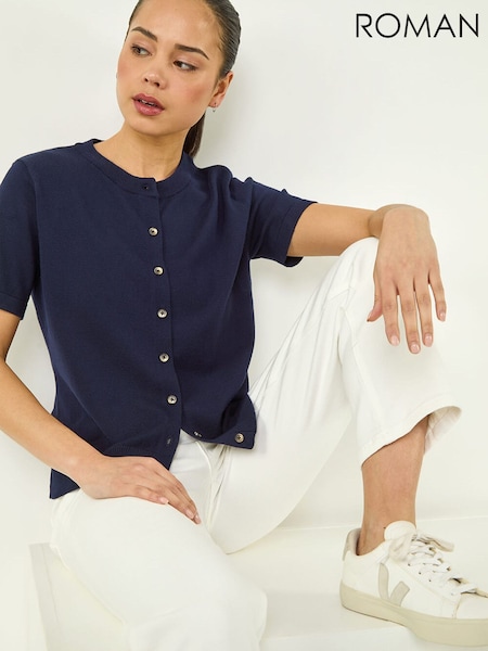 Roman Blue Petite Plain Stretch Cardigan