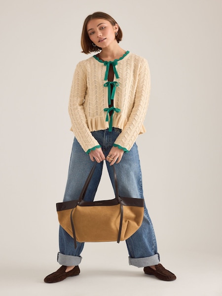 Threadbare Cream Cable Knit Velvet Bow Detail Cardigan