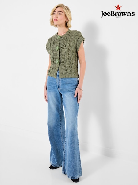 Joe Browns Green Louisa Sleeveless Cable Knit Cardigan