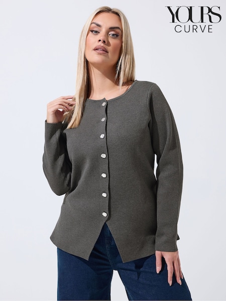 Yours Curve Grey Limited Long Sleeve Button Cardigan