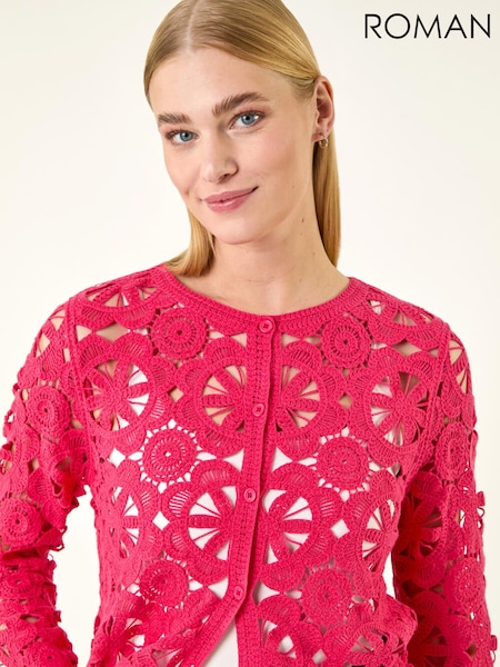 Roman Pink Crochet Knit Cardigan