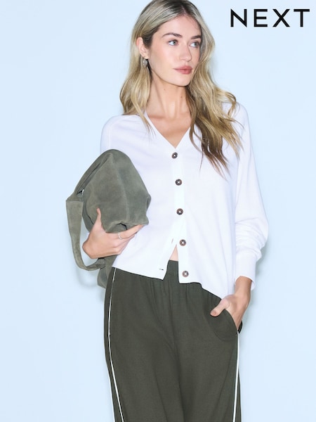 White Soft Touch V-Neck Cotton Rich Button Up Cardigan