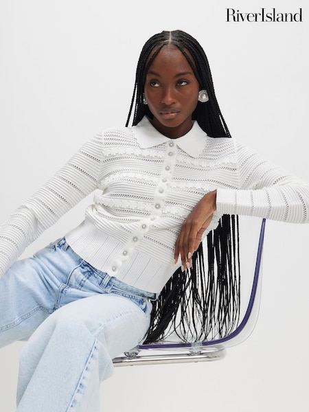 Yumi Cream Crochet Knitted Cardigan With Peter Pan Collar