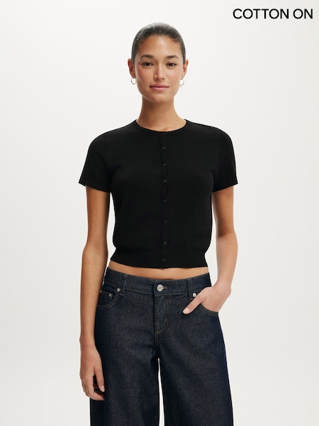 Cotton On Black Cap Sleeve Crew Neck Cardigan