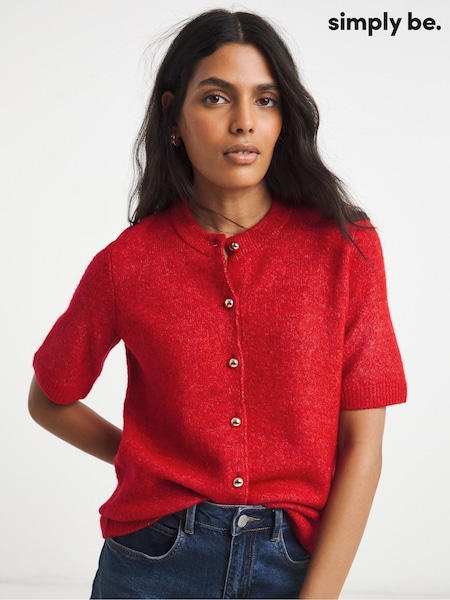 Simply Be Red Chunky Cardigan With Hammered Buttons