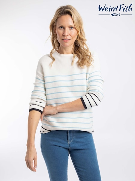 Weird Fish Cream Sutton Striped Knitted Crew Neck Jumper