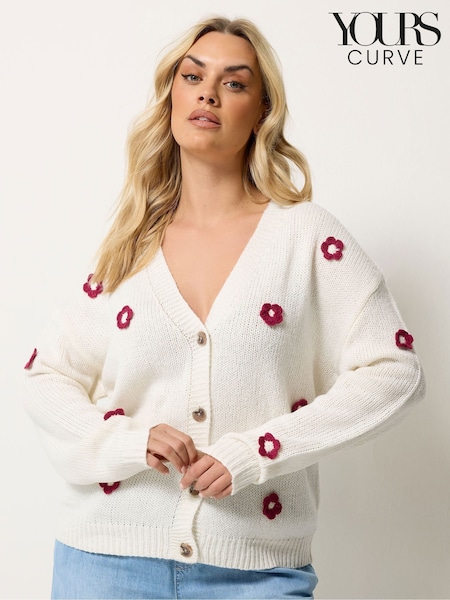 Yours Curve Cream Floral Lofty Yarn Applique Cardigan