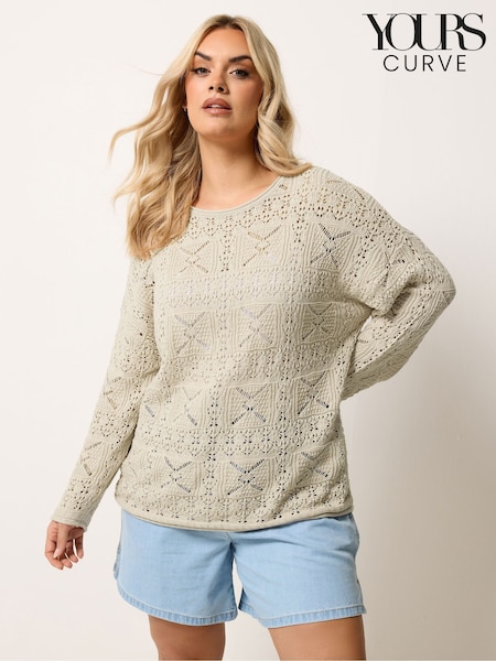 Yours Curve Natural Pointelle Stitch Long Sleeve Jumper