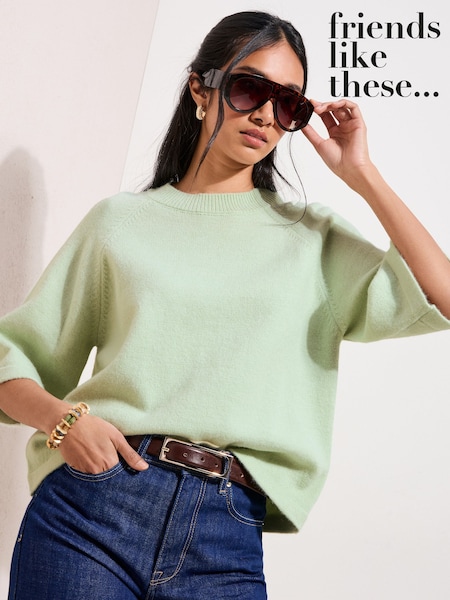 JD Williams Green Sponge Raglan Short Sleeve Knitted Jumper