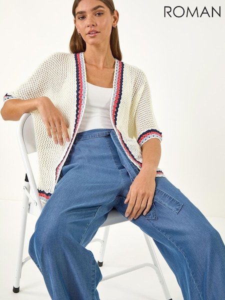 Roman White Pattern Crochet Knit Cardigan
