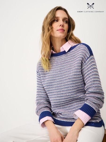 Crew Clothing Blue Textured Stripe Cotton Jumper