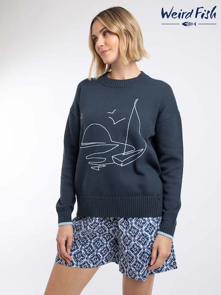 Weird Fish Blue Lauro Embroidered Crew Knit Jumper