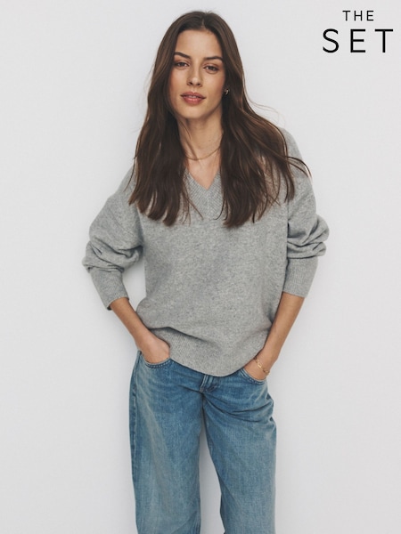 The Set 2 Pack 2 Pack Knitted V-Neck Jumpers With Wool Black/Grey Marl