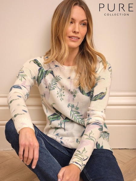 Pure Collection Cream Cashmere Gassato Arizona Floral Crew Neck Jumper
