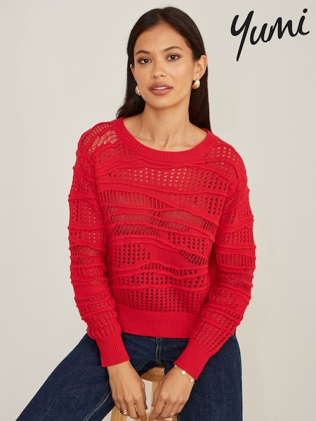 Roman Red Crochet Lace V-Neck Open Knit Jumper