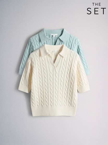 The Set 3/4 Sleeve Cable Knitted Jumpers Blue/Pastel Yellow
