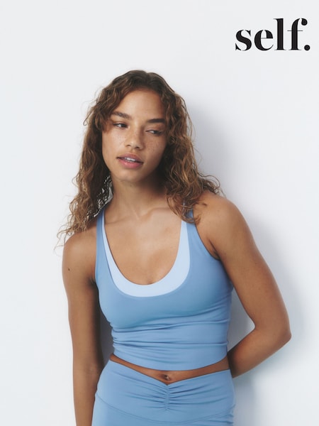 self. Blue Twist Back Crop Top