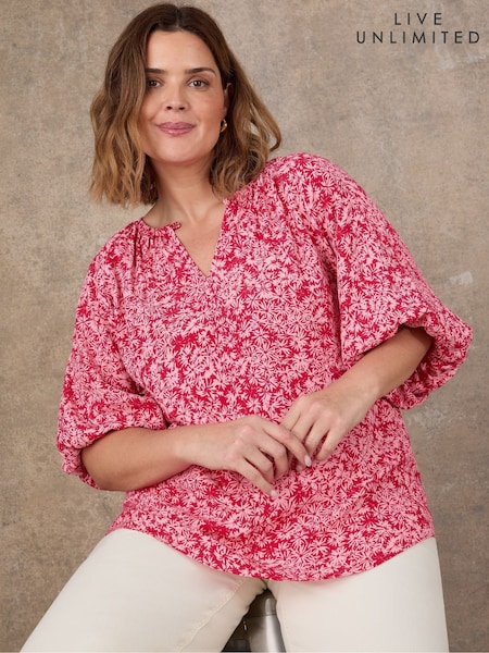 Live Unlimited Pink Floral Print Raglan Puff Sleeve Blouse