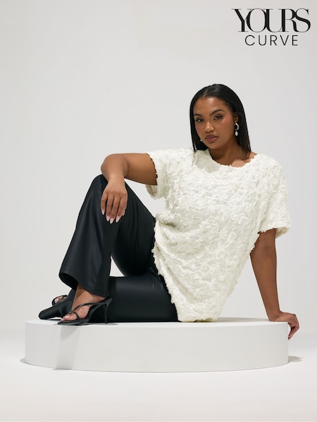 Yours Curve White Embroidered Crinkle Top