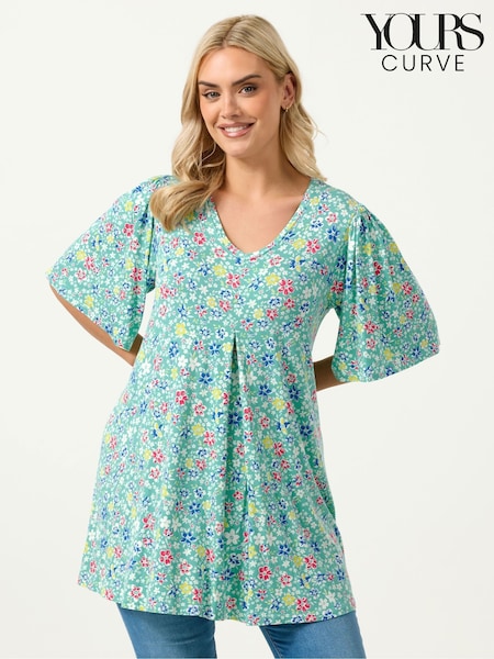 Yours Curve Green Floral Pleated Front Blouse