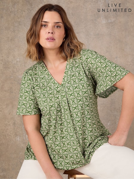 Live Unlimited Green Print Flutter Sleeve Pleat Front Top
