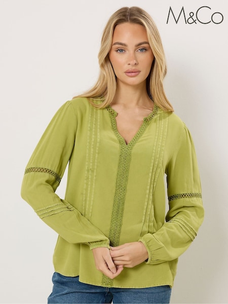 M&Co Green Long Sleeve Acid Wash Boho Blouse