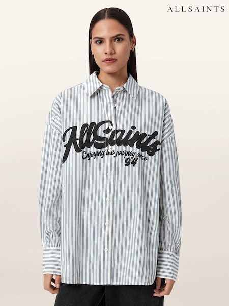 AllSaints White Shannon Stripe Cotton Shirt