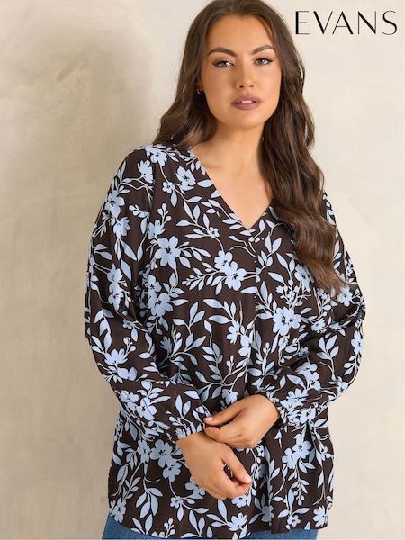 Evans Brown Pleated Swing Top