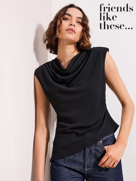 Friends Like These Black Sleeveless Assymetric Blouse With Subtle Shoulder Pads