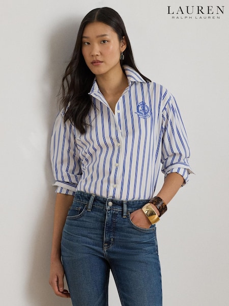 Lauren Ralph Lauren Blue/White Kotta Relaxed Fit Striped Stretch Cotton Shirt