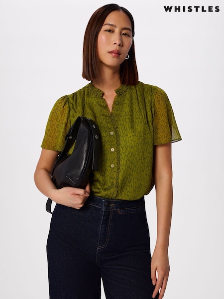 Whistles Green Oval Spot Tie Sleeve Shirt