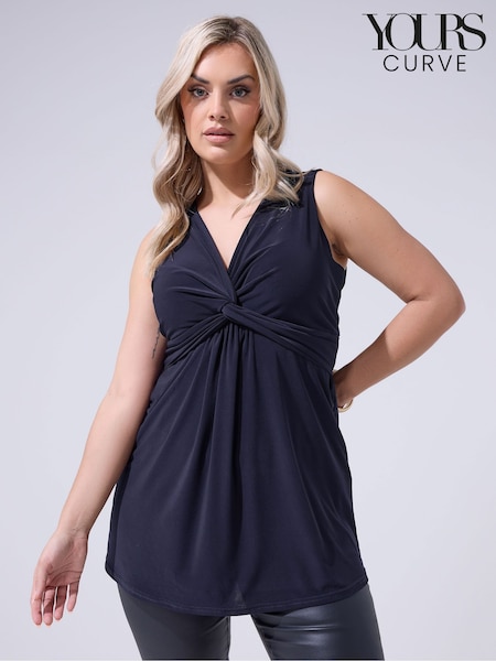 Yours Curve Blue London Sleeveless Knot Front Top