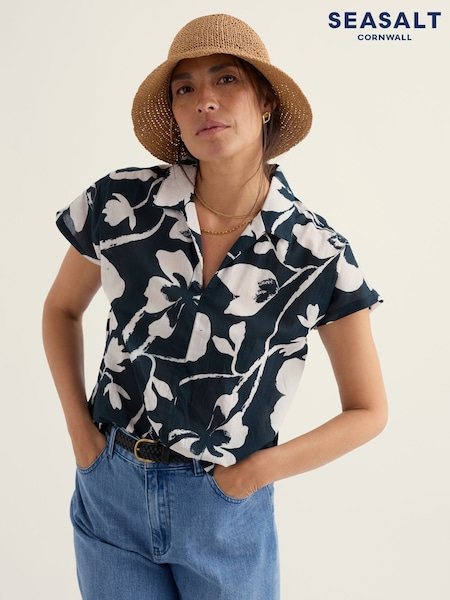 Jigsaw Blue Cotton Voile Relaxed Shirt
