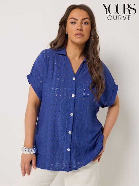 Yours Curve Blue Broderie Anglaise Grown On Sleeve Shirt