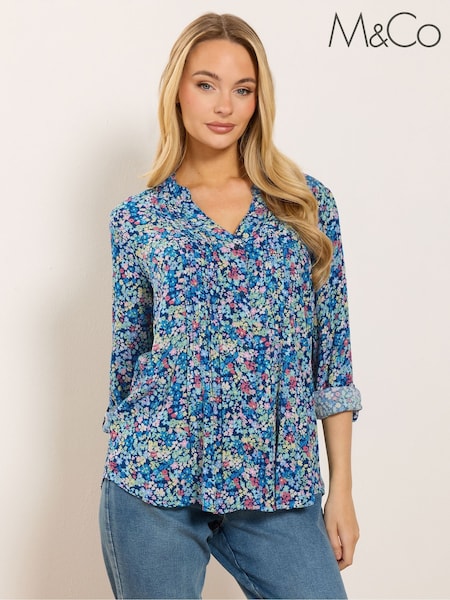 M&Co Blue Long Sleeve Pintuck Blouse
