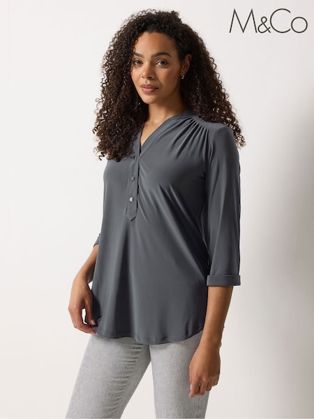 M&Co Grey Half Placket Collarless Shirt