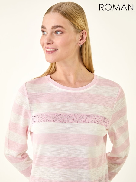 Roman Pink Embellished Stripe Stretch Top