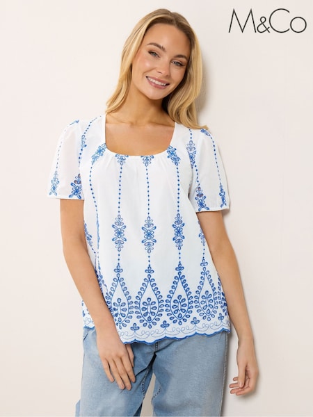 M&Co White Embroidered Short Sleeve Top