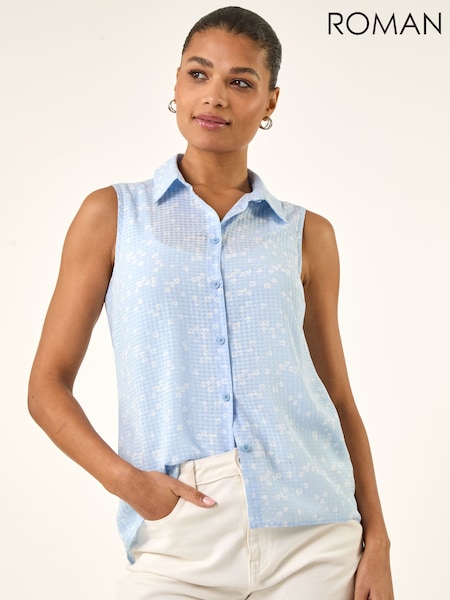 Roman Blue Ditsy Floral Sleeveless Blouse