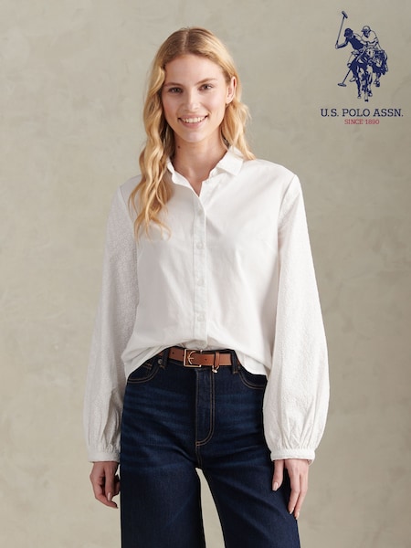 U.S. Polo Assn. White Broderie Detail Loose Fit Shirt