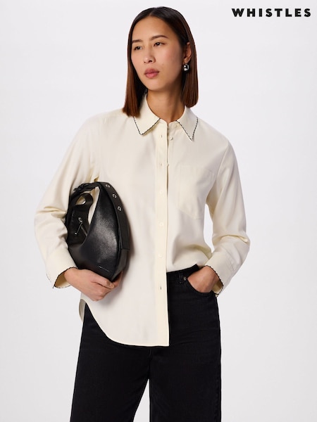 Whistles White Dashed Marks Tie Sleeve Shirt