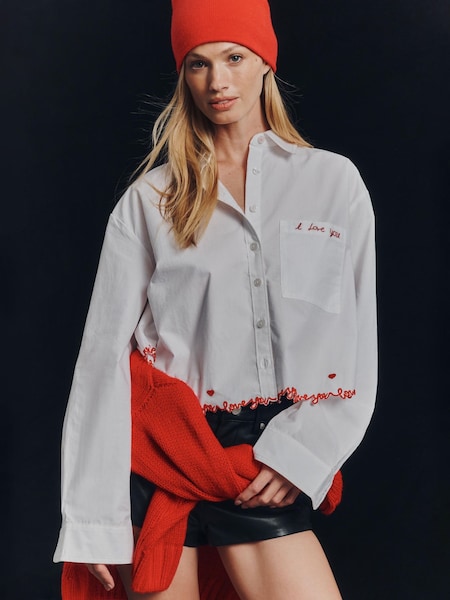 Smith & Soul White Shirt Blouse With "AVEC AMOUR" Slogan