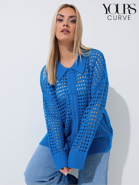 Yours Curve Blue Limited Crochet Collar Long Sleeve Shirt