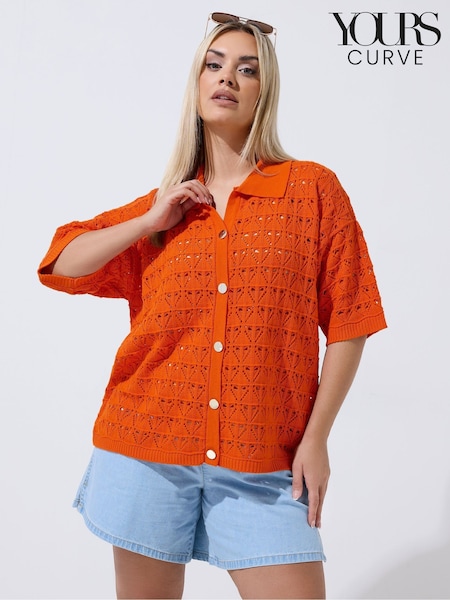 Yours Curve Orange Limited Crochet Shirt