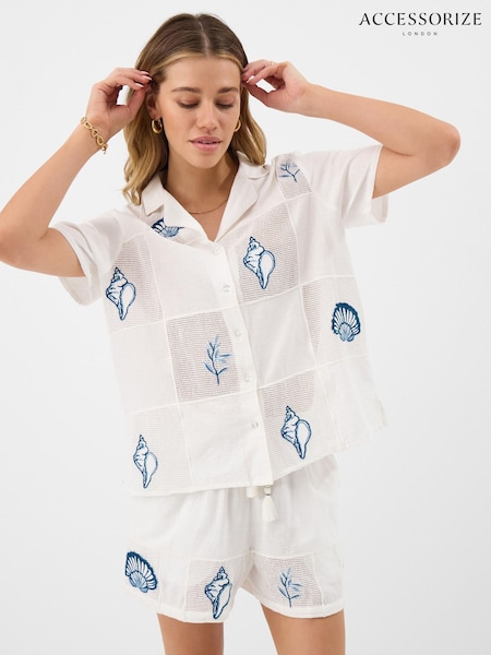 Accessorize Cream Shell Embroidered Patchwork Shirt
