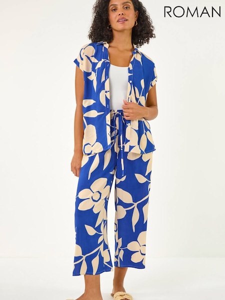 Roman Blue Floral Mono Print V-Neck Shirt