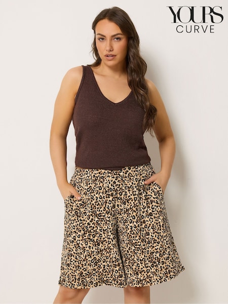 Yours Curve Brown Bengaline Pedal Pusher Shorts