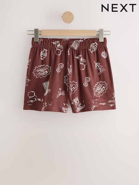 Chocolate Brown Print Tie Waist Jersey Shorts
