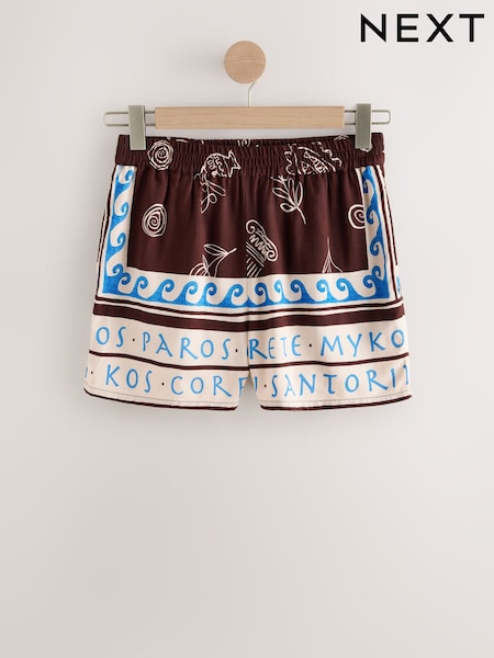 Hush Palm Print Chocolate Printed Linen Blend Shorts