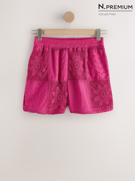 Hot Pink N. Premium Crochet Patchwork Shorts